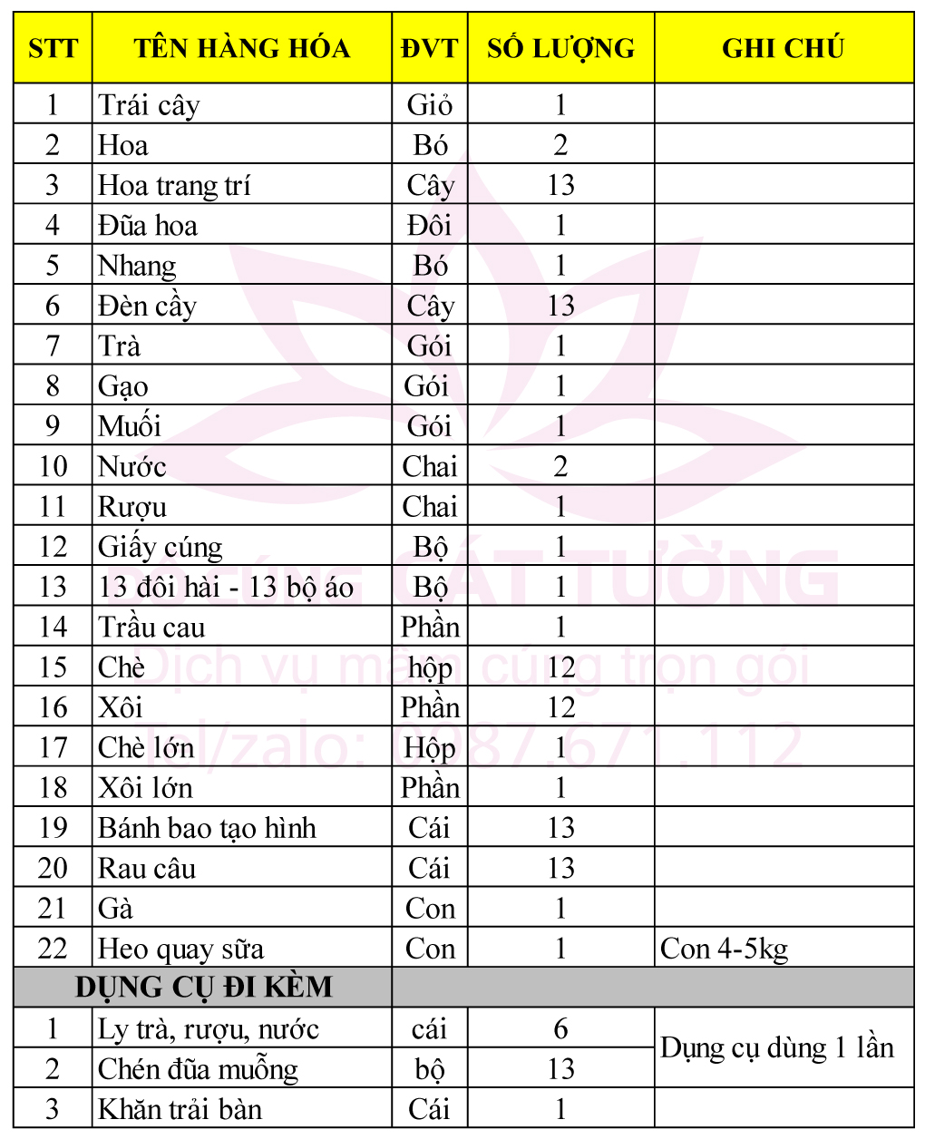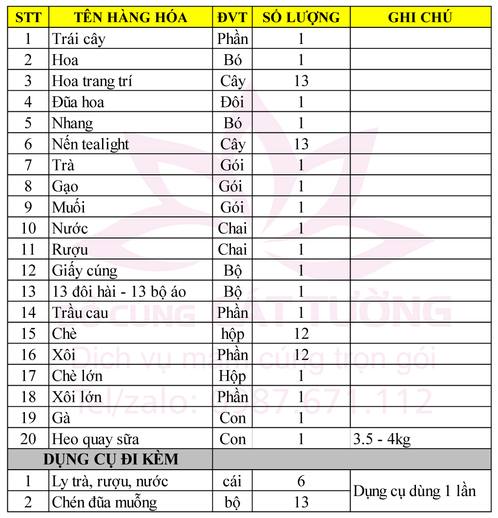 CHI TIẾT MÂM THÔI NÔI - GÓI 1